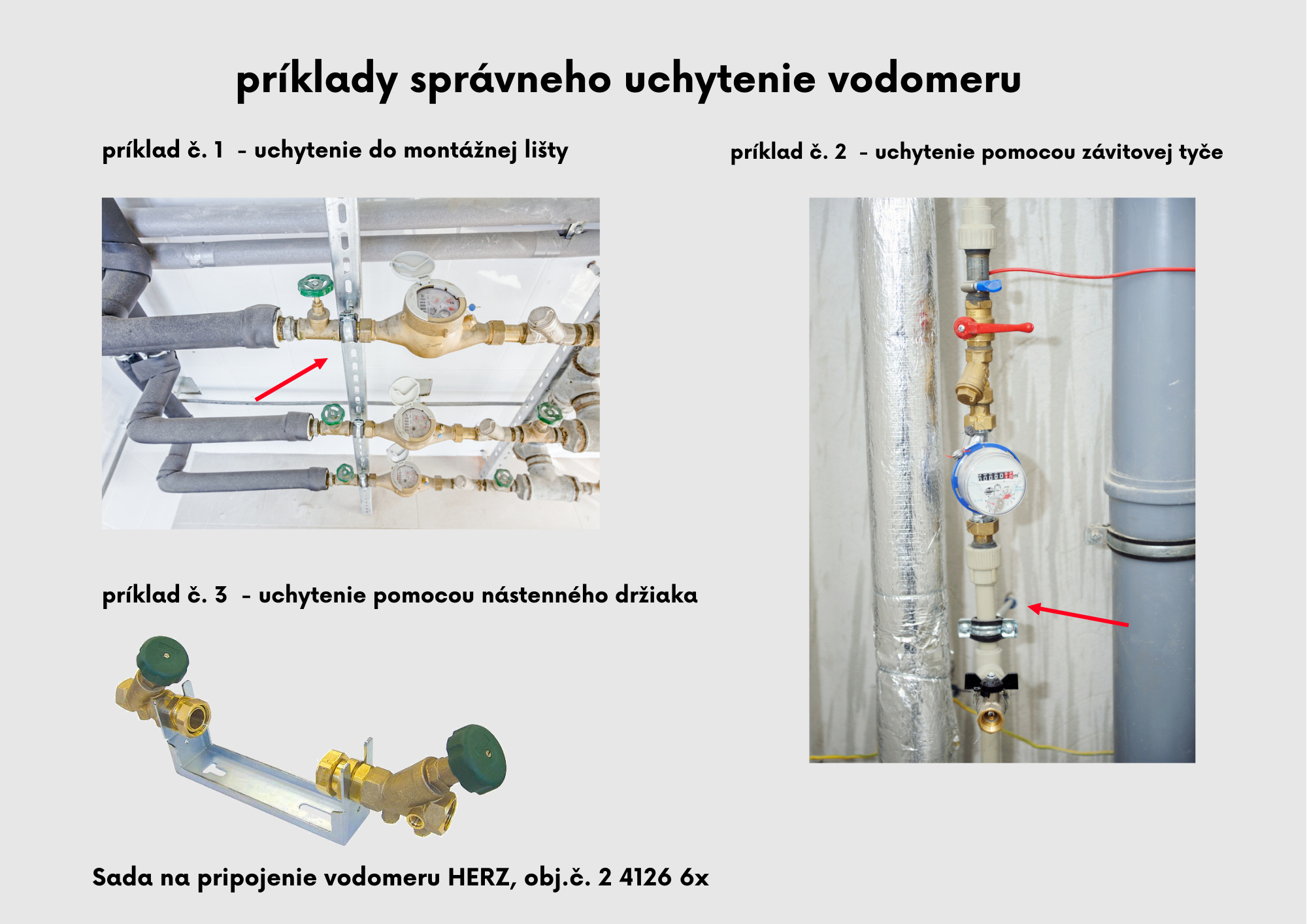 Nie vždy sú v bytovom jadre ideálne podmienky pre vyššie navrhované riešenia. Uchytenie nemusí byť technicky dokonalé, ani esteticky zvládnuté na výbornú. Dôležité však je VŽDY nájsť spôsob AKO a KAM vodomer dostatočne uchytiť.